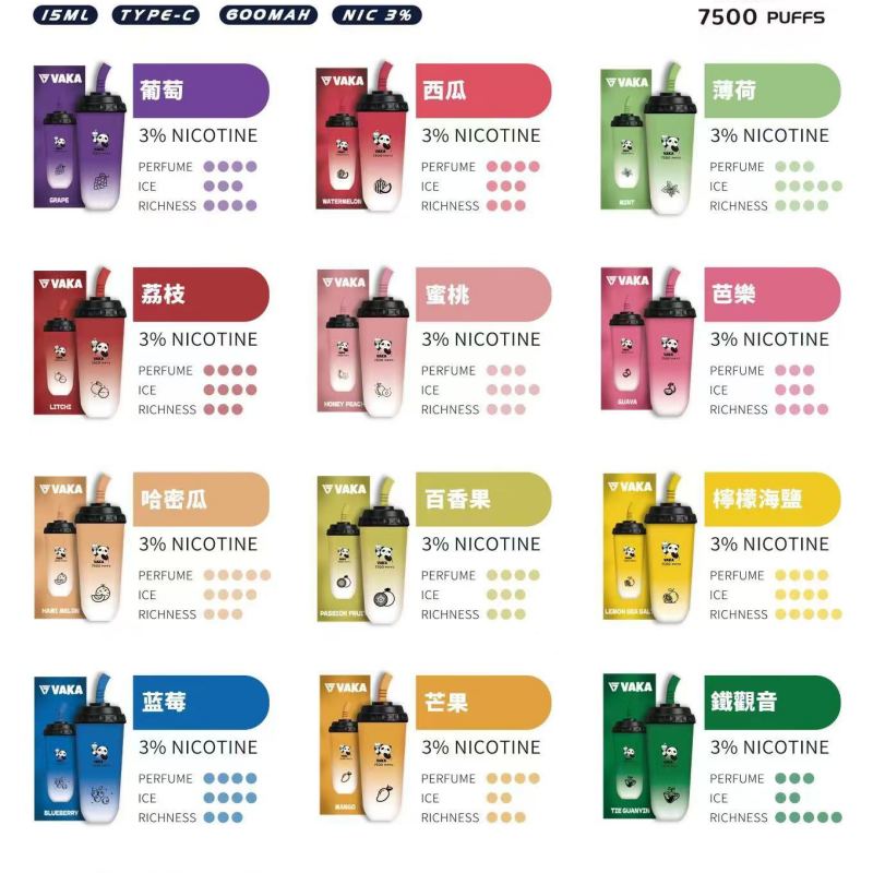 總的來說,VAKA奶茶杯以其獨特的先進技術、超大容量、15ML實際註油量、3%的含量等特點,為奶茶愛好者和電子煙使用者帶來一場奢華的吸煙體驗。不論您是追求口感升級還是便捷使用的消費者,VAKA奶茶杯都是您值得一試的絕佳選擇。